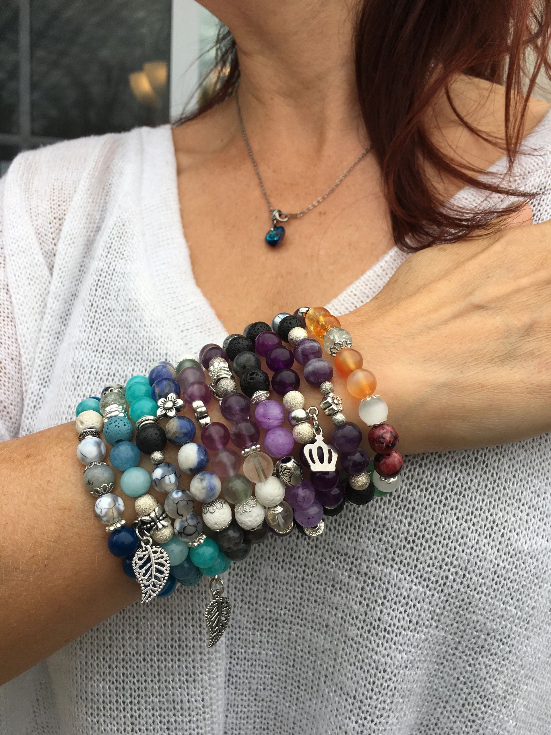 Dans mes bracelets, j'utilise des pierres volcaniques qui peuvent servir de diffuseur d’huiles essentielles. Vous n’avez donc qu’à déposer quelques gouttes d'huiles sur ces pierres !