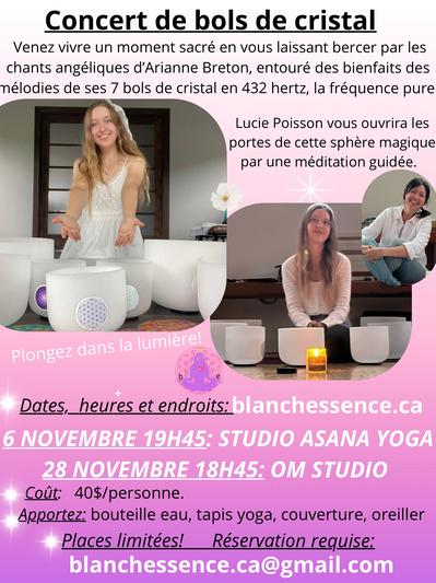avec les mélodies célestes de mes 7 bols de cristal correspondant aux 7 chakras et ma harpe de cristal en 432 hertz ( la fréquence pure ), accompagnées de chants angéliques inspirés qui vous propulseront dans une sphère magique, dans un grand bien-être tout en vous faisant bénéficier de leurs bienfaits. Certaines de mes chansons ont été captées lors d’expériences spirituelles dans d’autres plans vibratoires/dimensions.🩷 Entre autres, il y en a une que j’ai captée dans un temple sacré d’un autre plan et une qui est une berceuse que j’ai ramenée lors d’une expérience spirituelle avec Marie.🤍